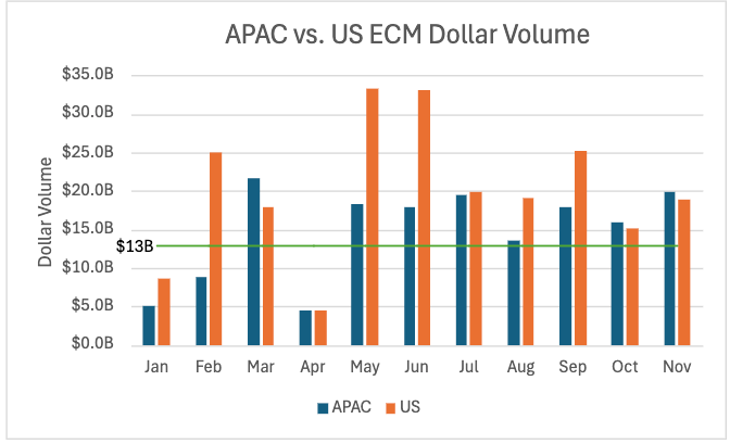 While U.S. issuance demonstrated steady momentum into year-end, APAC continued to stand out, recording its seventh consecutive month of $13B+ in issuance—a streak last observed in 2021.